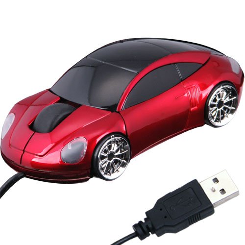 Daffodil WMS207R Mini Souris Optique à Molette Plug and Play USB en Forme de Voiture avec Phares LED Avant et Arrière - Souris d'Ordinateur avec 3 Boutons, Molette et DPI 800 - Pour Laptop / Notebook / Desktop - Compatible avec Microsoft Windows (7 / XP / Vista) et Apple Mac (OS X +) - Porsche Rouge