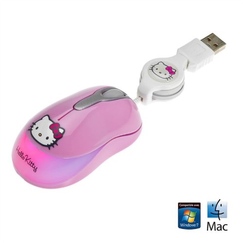 Bluestork MEEEPC Hello Kitty Souris optique avec câble rétractable Rose